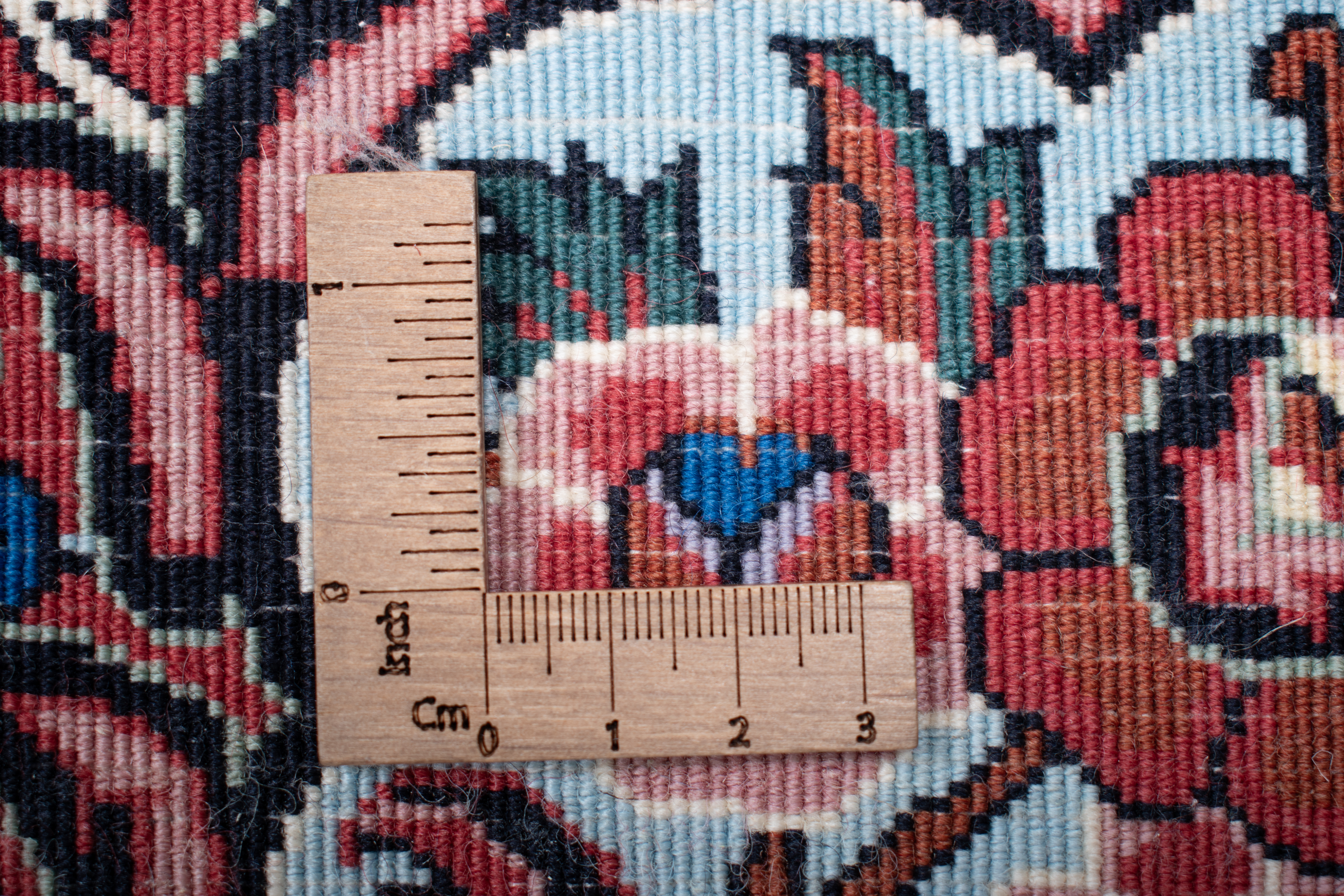 Kette aus Baumwolle: Baumwolle eignet sich hervorragend als Kette (Grundgewebe) für einen echten handgeknüpften Teppich, da Sie strapazierfähig und gleichzeitig fein und engmaschig gesponnen werden kann.