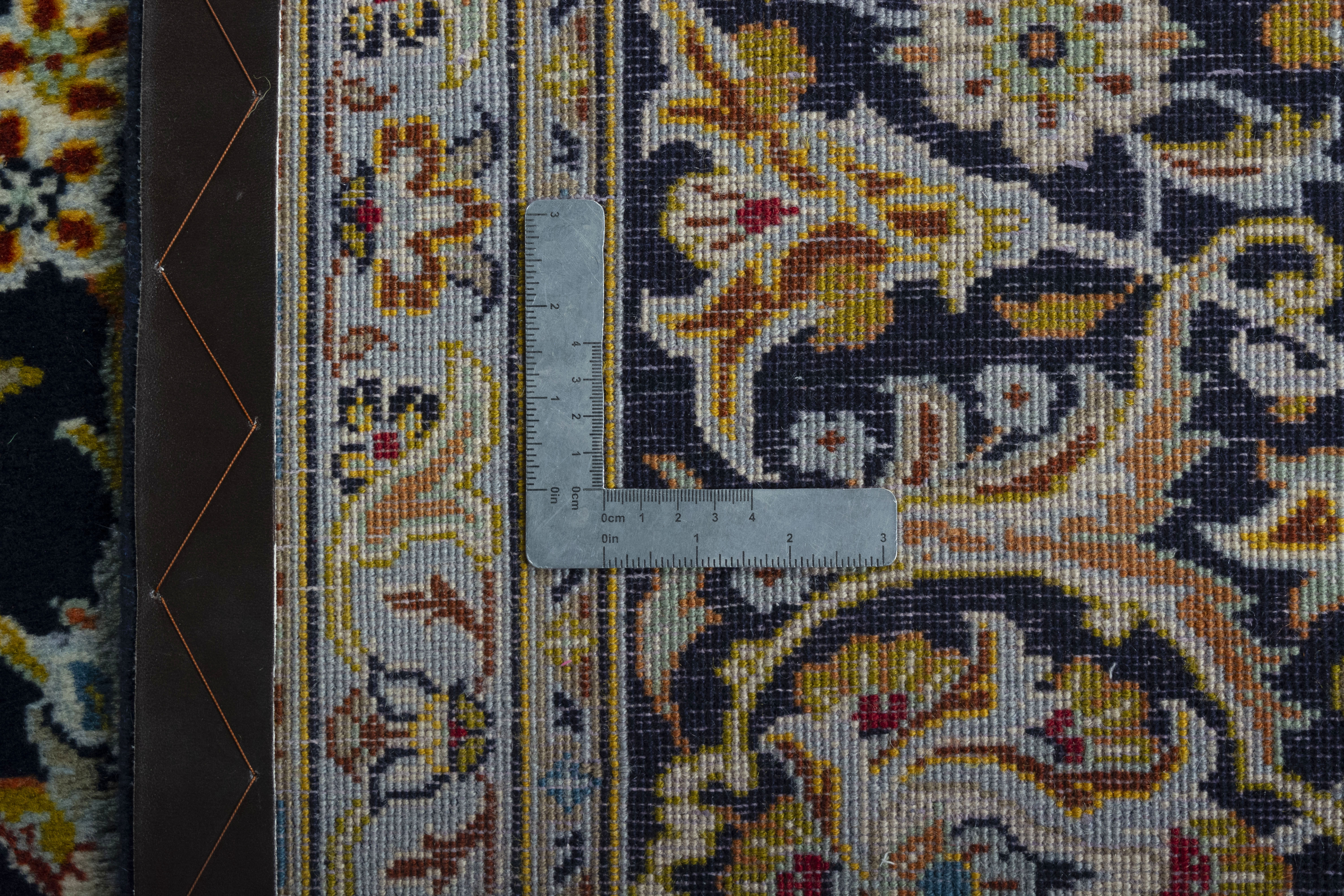 Kette aus Baumwolle: Baumwolle eignet sich hervorragend als Kette (Grundgewebe) für einen echten handgeknüpften Teppich, da Sie strapazierfähig und gleichzeitig fein und engmaschig gesponnen werden kann.