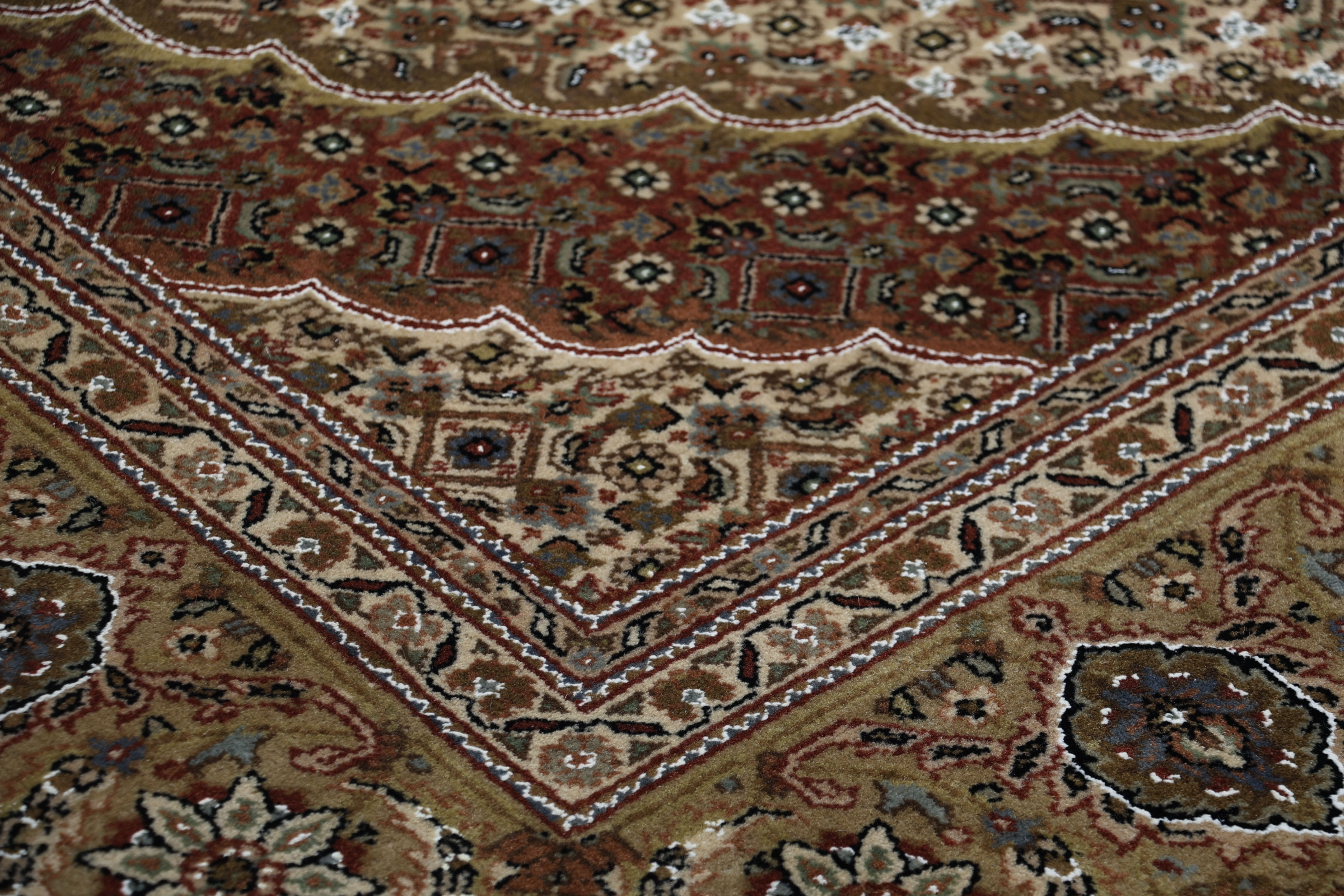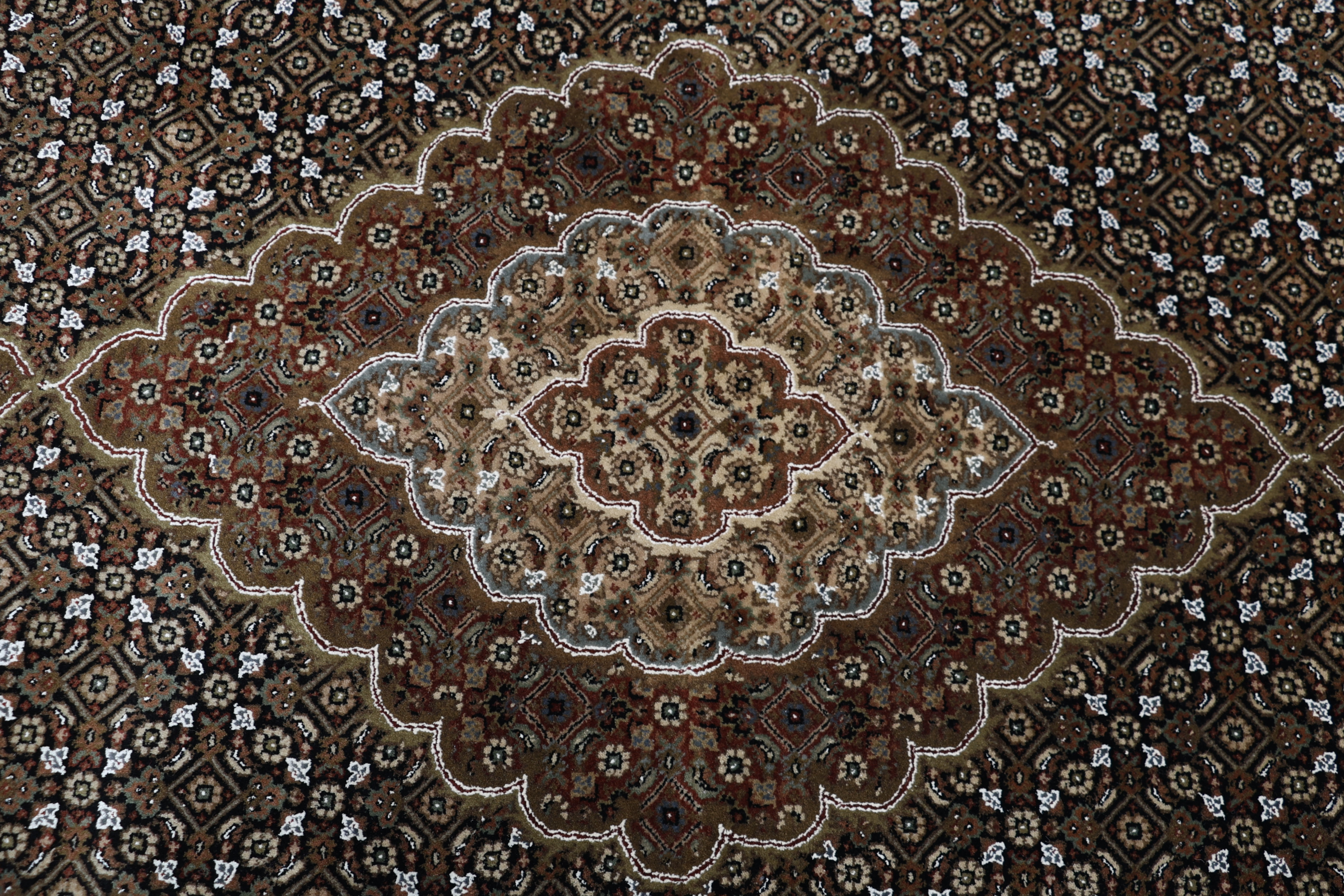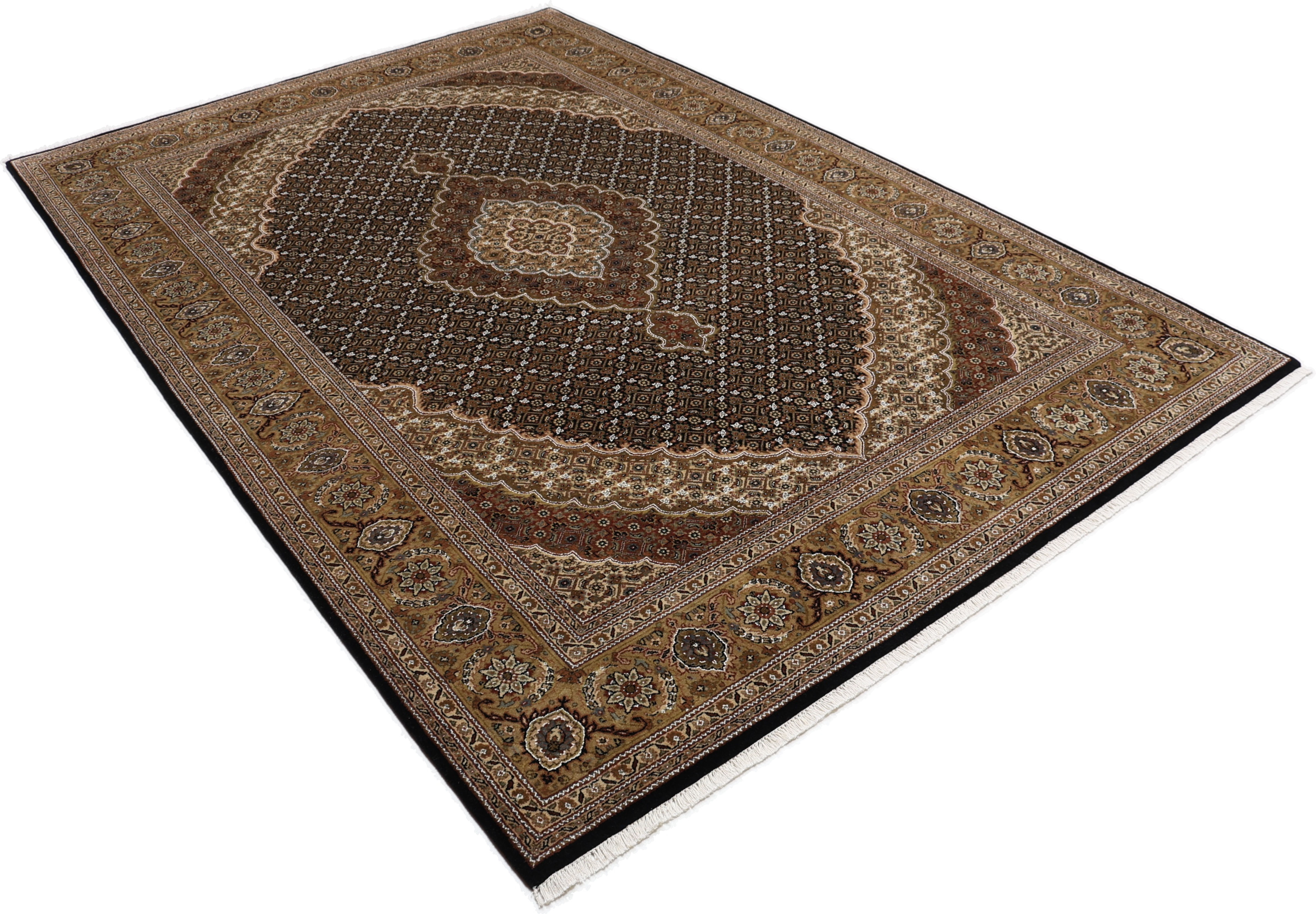 Mir Teppiche: Mir Teppiche erhalten ihren Namen vom sogenannten Mir-Muster. Ursprünglich stammt das Muster aus der persischen Stadt Sarough, wird heute aber in vielen Regionen des Orients geknüpft. Durch das schlichte Muster fügt sich der Teppich hervorragend in eine bestehende Einrichtung ein. Charakteristisch ist auch die schöne weiche Wolle. Dennoch ist er dicht geknüpfte Wolle und besonders langlebig. Der Mir Teppich eignet sich deshalb als unempfindlicher Alltagsbegleiter in schönem Muster.