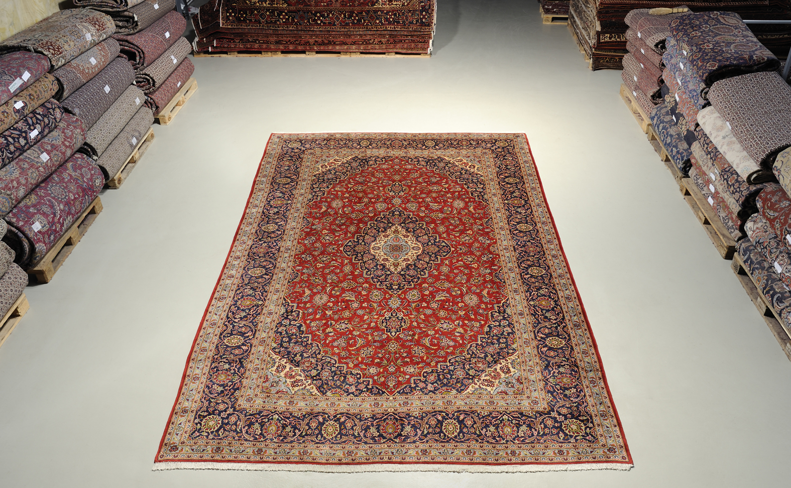 Kashan Teppiche: Kashan Teppiche kommen aus der berühmten persischen Stadt Keshan im Herzen des Iran. Die gleichnamigen Kashan Teppiche sind schon seit den fünfziger Jahren sehr beliebt. Der Kaschan Teppich ist ein idealer Wohnzimmer Teppich, da er besonders strapazierfähig ist und mindestens einige Jahrzehnte lang seine Schönheit erhält. Ein Kashan Teppich vereint die exotischen persischen Muster mit Widerstandsfähigkeit und Alltagstauglichkeit wie kein anderer Perserteppich.
