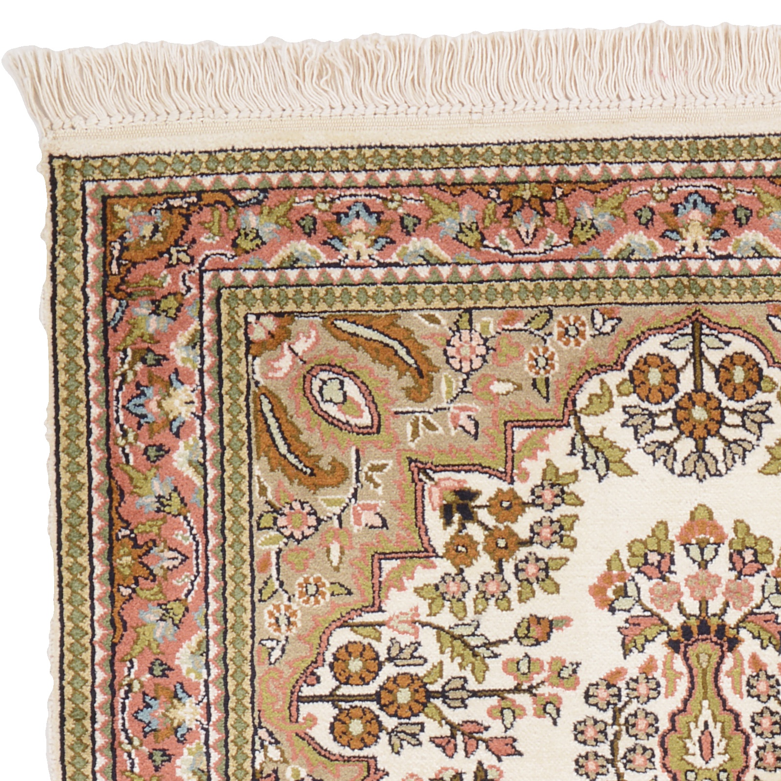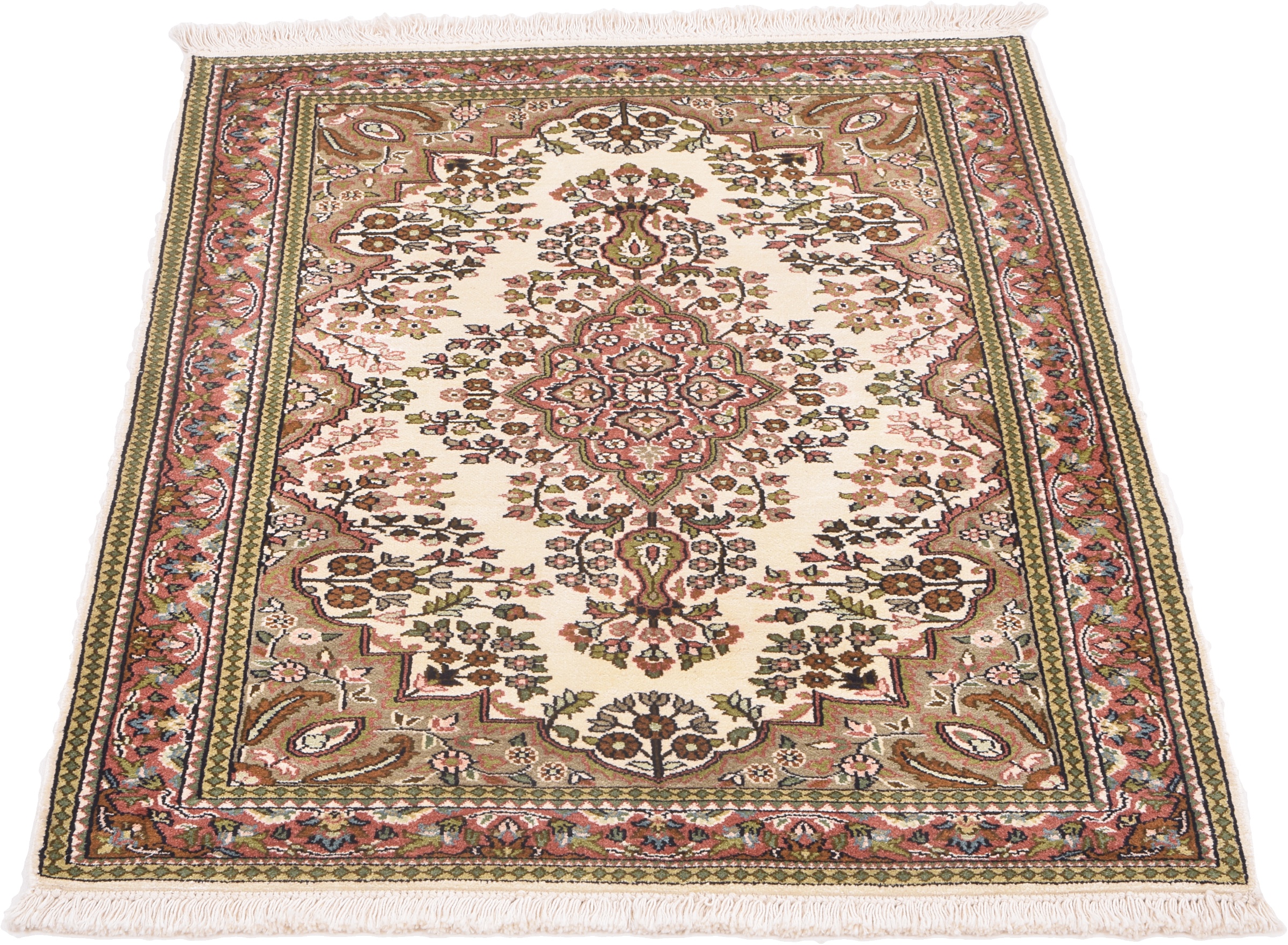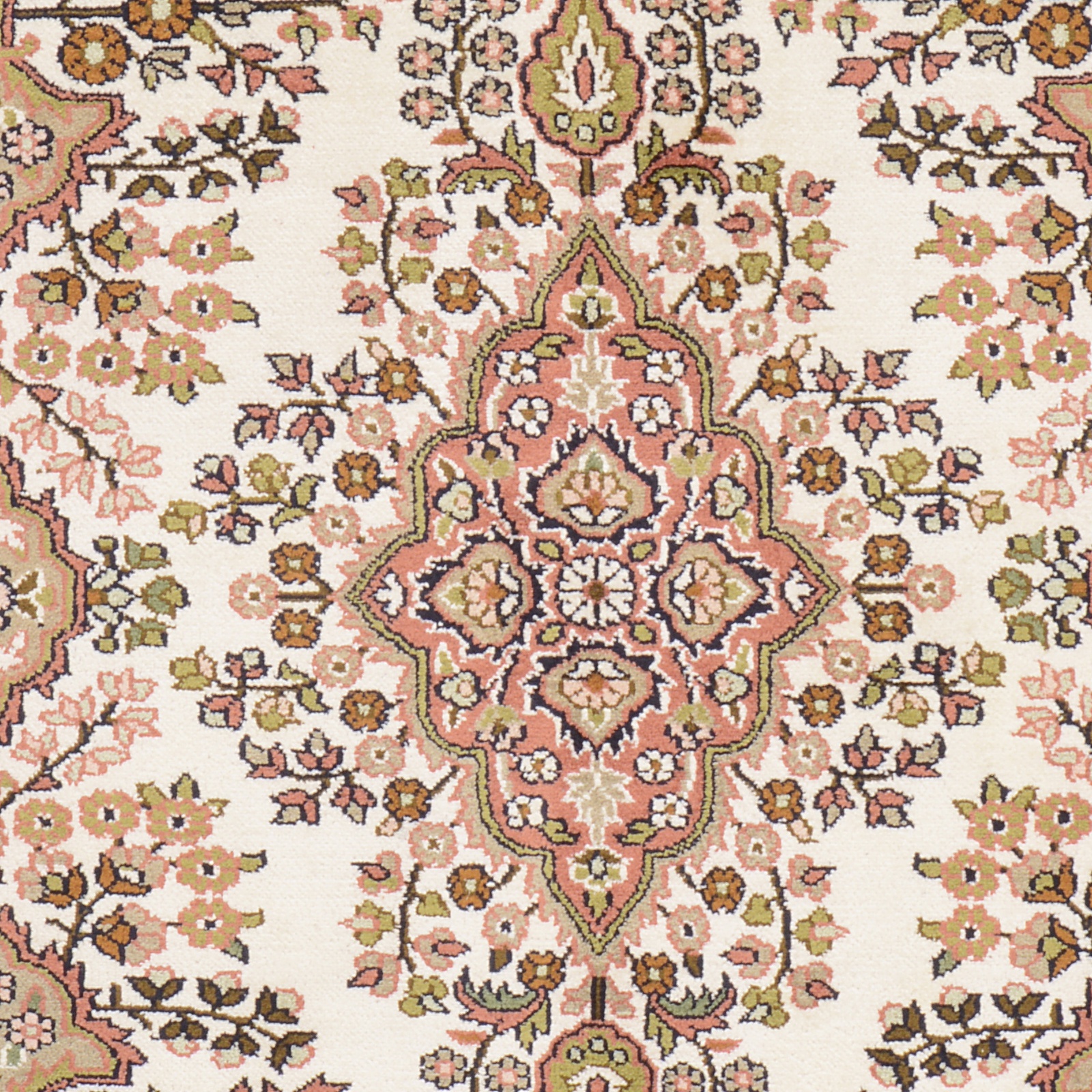 Flor aus Seide: Seide ist das feinste und geschmeidigste Garn der Welt und verleiht dem Teppich dadurch eine sehr exklusive Note. Seide wird nur für sehr hochwertige Teppiche verwendet und verleiht dem Teppich eine sehr angenehme Haptik.